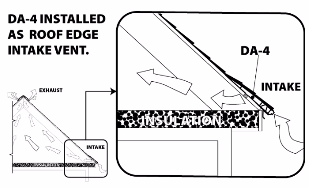 Deck-Air is installed along the lower edge of the roof deck, typically a few feet above the eave. It allows outside air to enter the attic space even when soffit ventilation is limited or blocked.